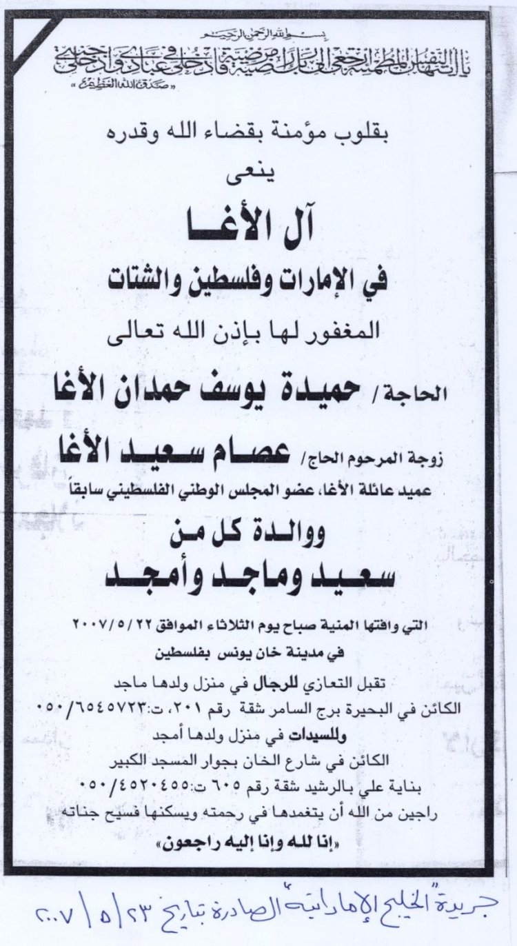 (9)السيد امجد الأغا، السيد عبد الكريم الاسطل، السيد حمدان الأغا، السيد ماجد الأغا، السيد طاهر يونس الأغا، السيد غسان الاسطل