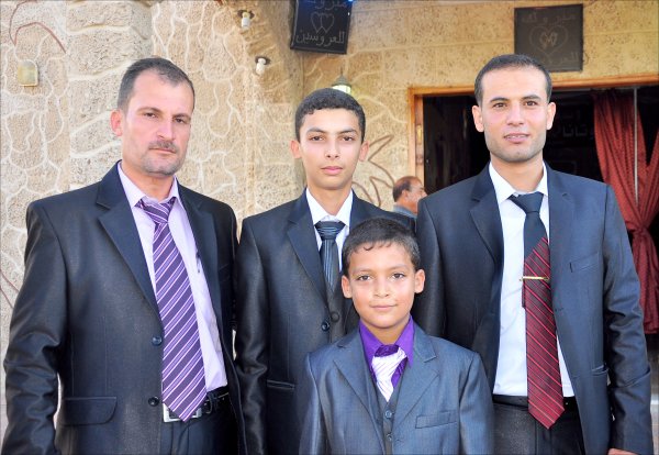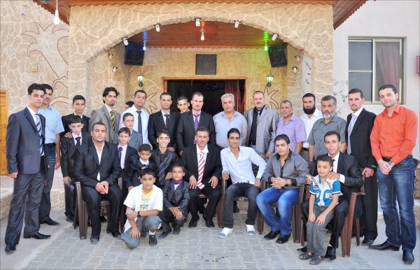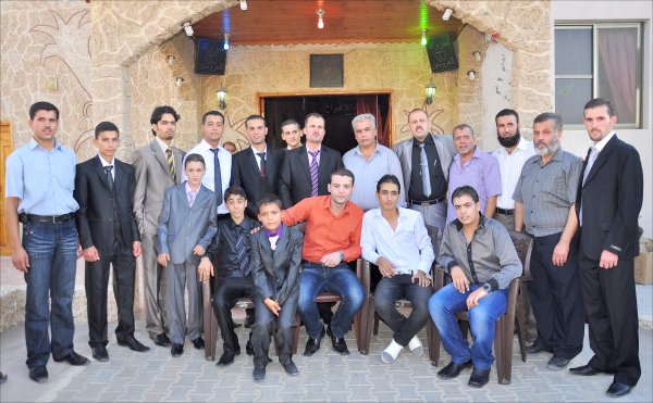 د. أيمن صالح الأغا وشقيقه الحاج محمد(خالا والد العروس)، نائل رشيد الأغا، أحمد محمد الأغا