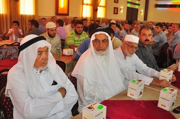 الشيخ عبدالهادي سعيد الأغا، الحاج منتصر جعفر الأغا، العريس، والد العروس