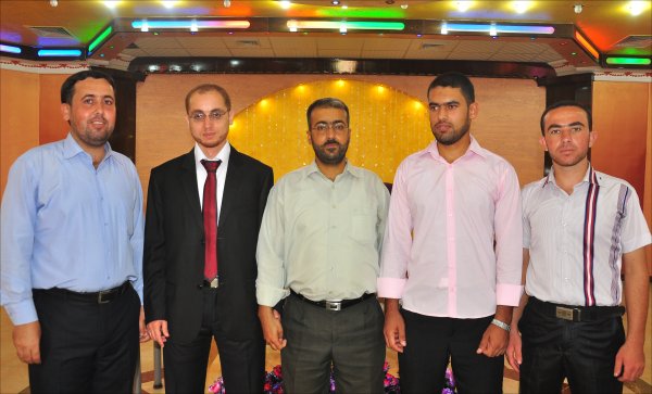 مؤنس(شقيق العريس)، أ. جعفر منتصر الأغا، د. عبدالجواد الأسطل، العريس، أحمد شبير، محروس جعفر الأغا