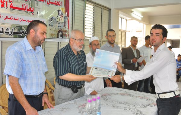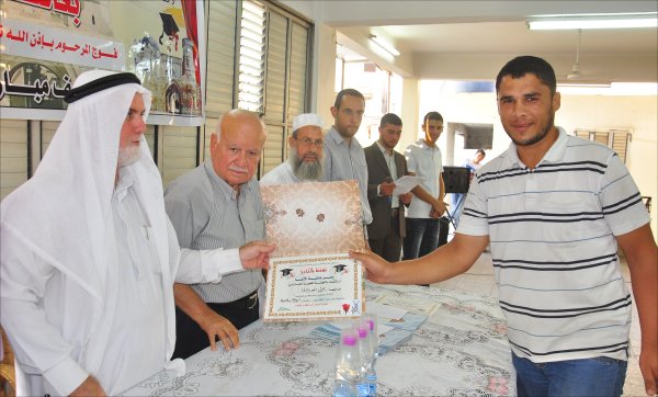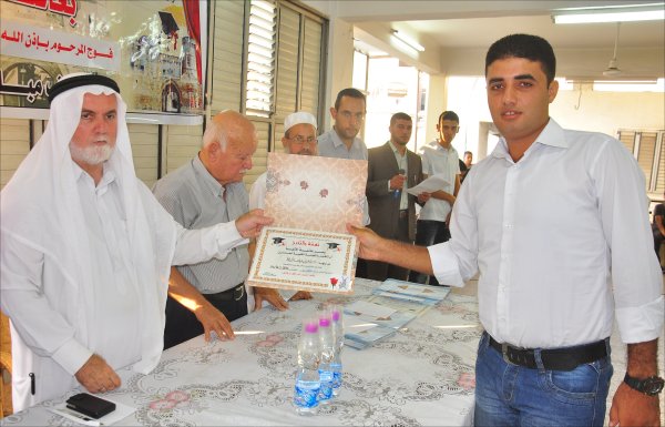 رمضان عبدالفتاح رمضان الأغا لحصوله علي المرتبة الاولي