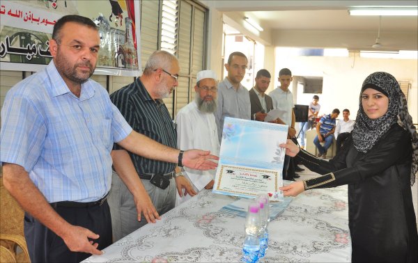 أسماء محمد عودة الأغا يتسلمها عنها شقيقها أ. ياسر