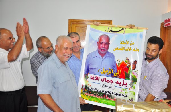 شركة توزيع الكهرباء- فرع خان يونس- دوار بني سهيلا- الأربعاء الموافق 12-09-2012، حفل تكريم ووداع الأستاذ يزيد جمال مصطفى الأغا، بعد خدمة وتفاني في العمل لمدة 30 عاماً قضاها بدايةً ببلدية خان يونس ثم إلى بلدية القرارة ، وانتهت بقسم الحاسوب في شركة الكهرباء.