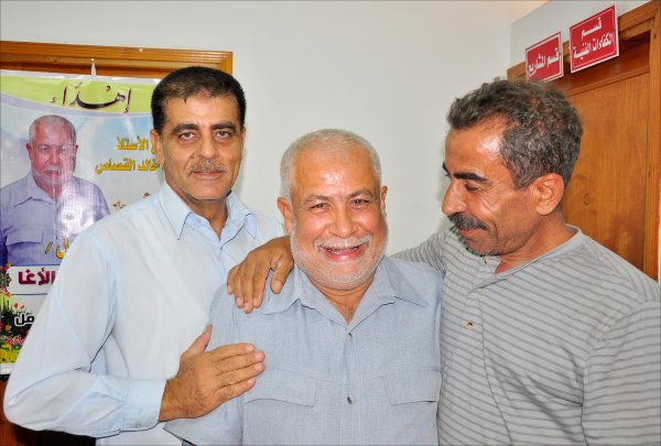 الحاج أبوجمال يتوسط نجليه محمود ومحمد