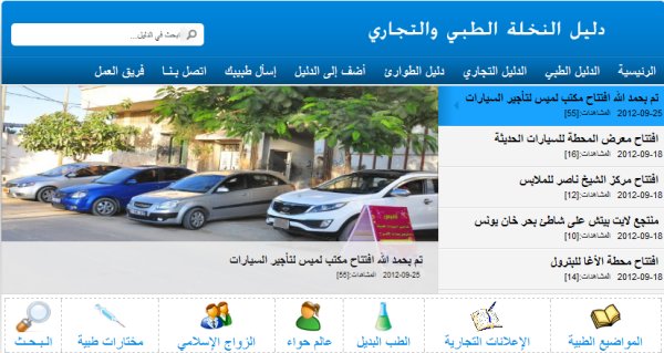 ومن هذا المنطلق كانت فكرة إنشاء دليل النخلة الطبي والتجاري على مستوى قطاع غزة فقط ، وهو عبارة عن وسيلة سهلة توصلك إلى ما تحتاجه من خلال هذا الموقع المجاني حيث يضم العديد من المهن والحِرف الطبية والتجارية المختلفة وكما ويتيح الموقع إمكانية إضافة إعلانات واستشارات طبيةً ، علما أن النشر مجانياً .