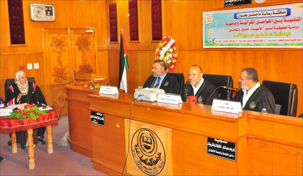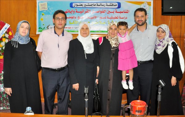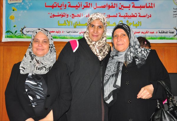 قاعة المؤتمرات- مبنى اللحيدان - الجامعة الإسلامية غزة- الثلاثاء الموافق 02-10-2012 الباحثة علا منير حمدي الأغا تنال درجة الماجستير في كلية أصول الدين - قسم التفسير وعلوم القران