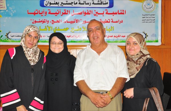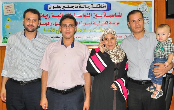 د. عبدالكريم الدهشان، أ. سميح زكي الأغا(زوج الباحثة)، الباحثة وشقيقها م. محمد