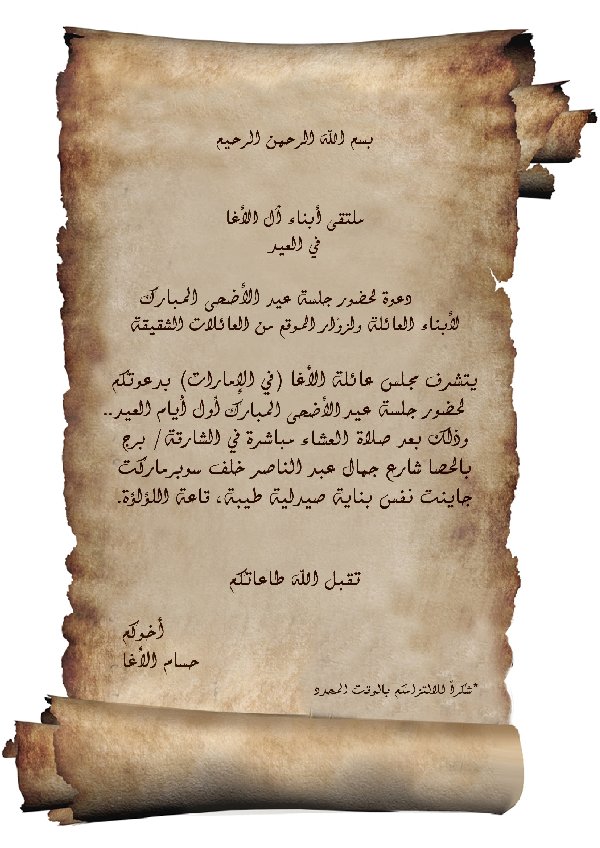 الرئيسة/أعياد/الإمارات- دعوة لحضور جلسة عيد الأضحى أعياد الإمارات- دعوة لحضور جلسة عيد الأضحى تاريخ النشر : الأربعاء | 24-10-2012 | 00:44 8814 اضغط هنا للتواصل أو التعرف على أ. حسام عثمان محمد حمدان الأغا يمكنك تلقي أحدث الأخبار أول بأول بانضمامك لإحدى مجموعات الواتساب الخاصة بالعائلة من خلال الضغط هنـا اظهر المزيد