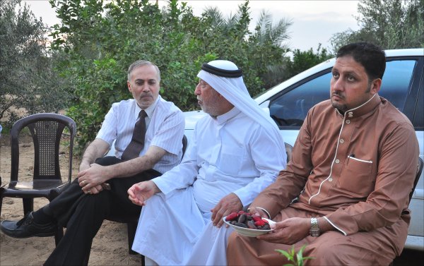 السطر الغربي- الأربعاء 24-10-2012، بدعوة كريمة من السيد علاء فهمي الأغا تم تناول طعام الإفطار على شرف الضيف ابن العم القادم من الحجاز السيد مهيب صبحي حافظ الأغا، بحضور الأحبة وذلك في مزرعته بالسطر الغربي - خان يونس .