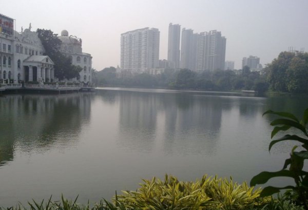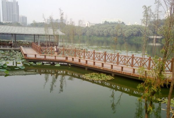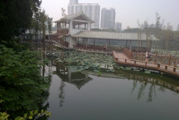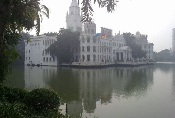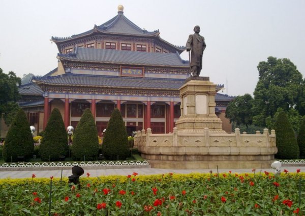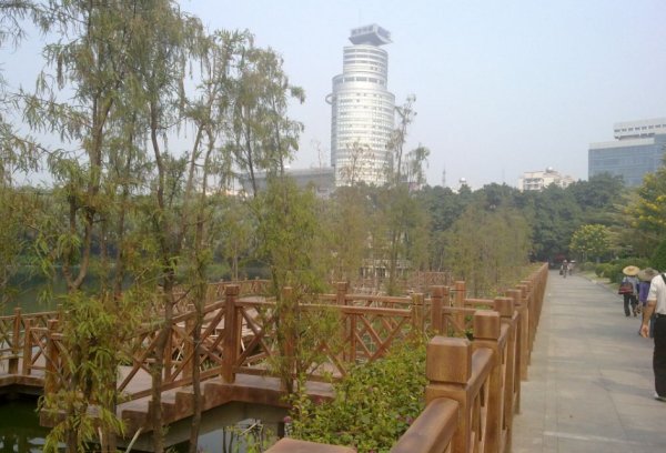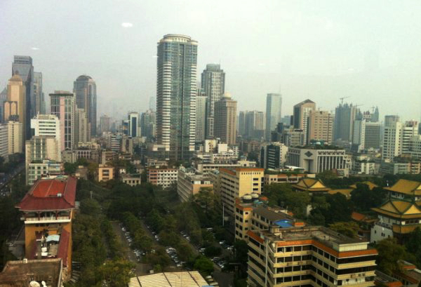 منظر عام لمحافظة جوانزو الصينية كما تبدو من شباك المكتب