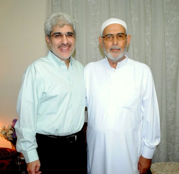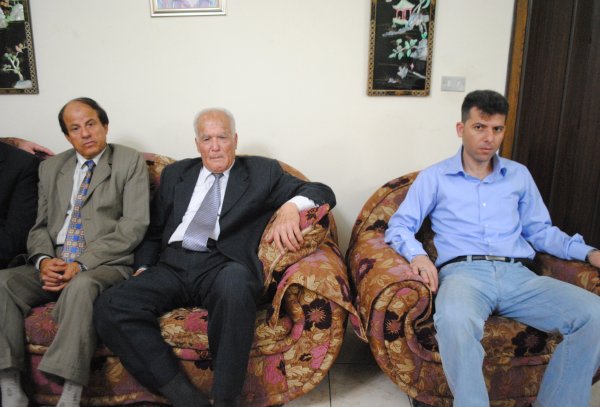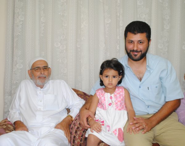 الحاج أبو نهاد وحفيدته لمياء، د. سامح حيدر الأغا وابنه أحمد، أ. نهاد محمد الأغا