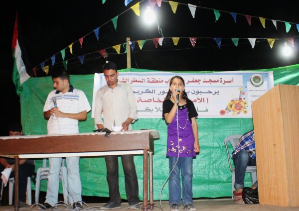 حيث بدأت الأمسية بآيات عطرة من الذكر الحكيم تلاها القاريء فراس محمد الأغا، وتلاها كلمة ترحيبية بالحاضرين قدمها أ. ماجد عيسى الأغا، وكان عريف الحفل المبدع فراس عبدالمجيد الأغا، وكانت هناك عدة فقرات متنوعة للطلاب والطالبات حيث قدمت فرقة مسجد جعفر وصلات انشادية رائعة، تلاها مسابقة ثقافية للجمهور من اعداد وتقديم المتألقين: أحمد عصام الأغا وأنس عبد المعطي الأغا، وفي جو من الفرح والسرور قدم فريق مسجد جعفر المسرحي مسرحية هادفة بعنوان " الطلاب الشاطرين"، وقد تخلل الأمسية أيضا فقرات فنية وانشادية وشعرية للطلاب والطالبات، وايضاً فقرة المواهب والتي كان بطلها رمضان كمال الأغا حيث قام بتقليد صوت أحد أشهر المعلقين العرب على الساحة الرياضة، وتخلل الأمسية أيضا ابتهال بصوت الشيخ محمد عوني الأغا، يذكر أن الأمسية كانت برعاية كريمة من: