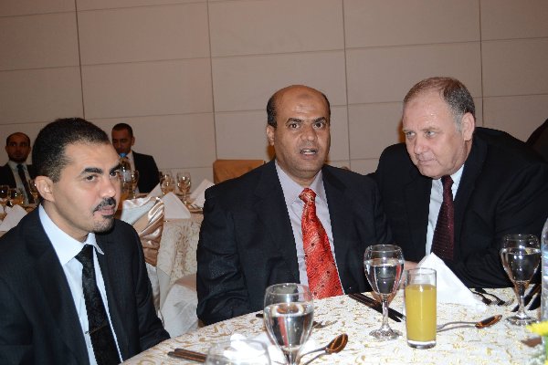 الحاج أمين خميس "أبو أحمد" يتوسط المهندسين رائد عبدالقادر وحازم موسى