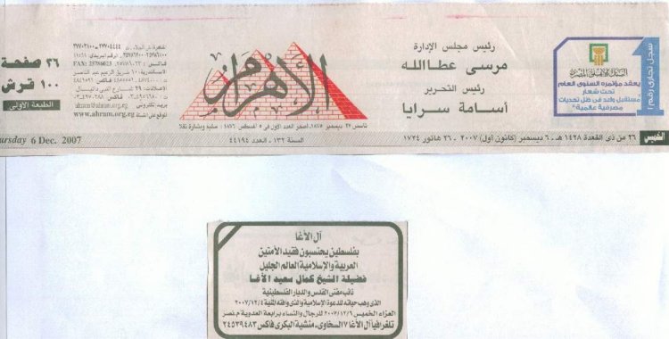 سماحة الشيخ/كمال سعيد حمدان الأغا ( في ذمة الله)
