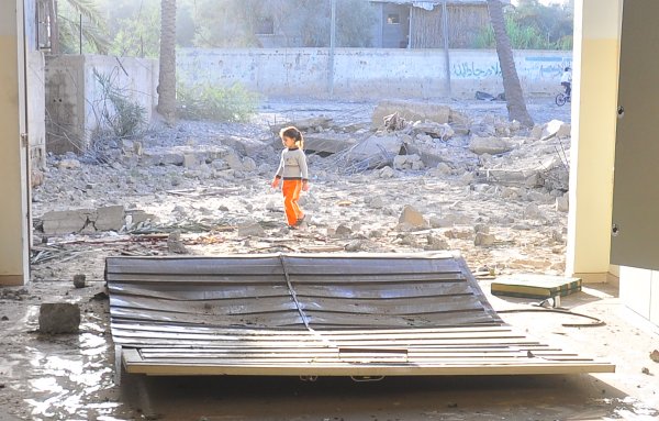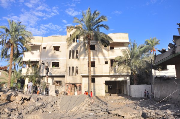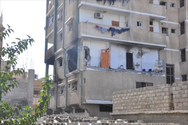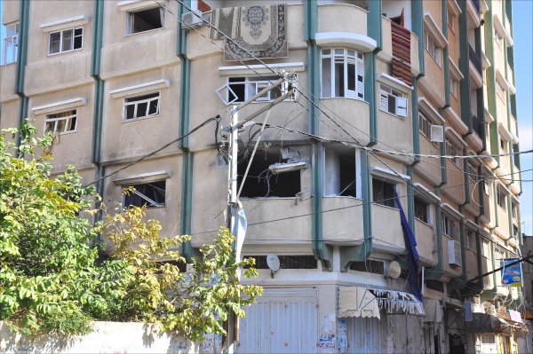 الواجهة الشرقية للطابق الأول الذي تم استهدافه يوم الثلاثاء 20-11-2012 في برج عبدالمعطي الأغا