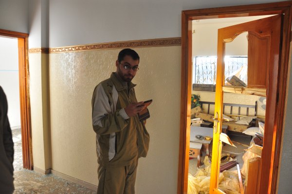 الواجهة الغربية للطابق الأول الذي تم استهدافه يوم الثلاثاء 20-11-2012 في برج عبدالمعطي الأغا