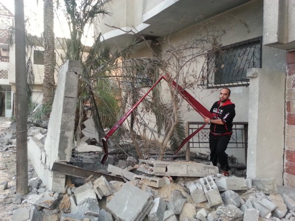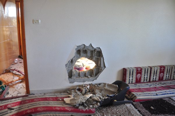 مكان سقوط صاروخ في منزل م. سفيان محمد الأغا