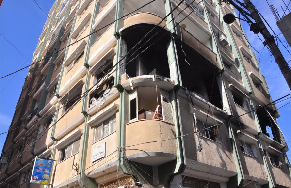 الواجهة الشمالية للطابق الأول الذي تم استهدافه يوم الثلاثاء 20-11-2012 في برج عبدالمعطي الأغا