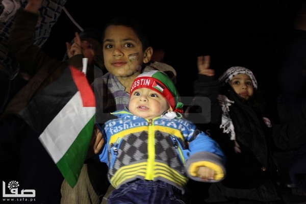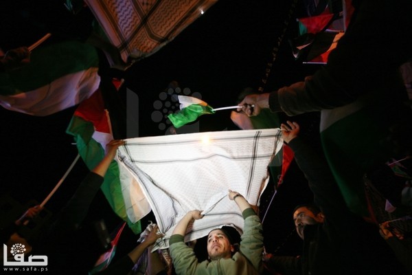 وأردف "إن هذه الوقفة الوحدوية التي خرجت فيها جماهير شعبنا اليوم بمشاركة القوى الوطنية تحت مظلة العلم الفلسطيني هي رسالة من الشعب وقواه للعالم اجمع ولكل من يتربص بنا أن الانقسام قد ولى لغير رجعة .. فأمس المقاومة انتصرت بحرب غزة .. واليوم تنتصر الدبلوماسية الفلسطينية وسنحتفل الليلة بإذن الله جميعا بهذا الانتصار السياسي باعتراف العالم بالدولة الفلسطينية ولتتمتع بكافة الصلاحيات ما يمنحنا الحق بملاحقة قادة الاحتلال على ما يقترفون من جرائم، كما يمنحنا حق الانضمام لكافة المؤسسات الدولية والنضال بكافة الوسائل المشروعة لطرد الاحتلال من ارضنا بما فيها القدس".