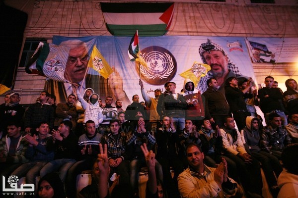 صور الإحتفالات بعد حصول فلسطين على دولة مراقب في الأمم المتحدة بأغلبية ساحقة بلغت 138 دولة مقابل 9 دول وامتناع 41 دولة عن التصويت.