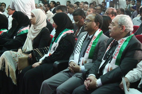 و قد شارك في الإحتفال رئيس و أعضاء لجنة التضامن السريلانكية مع شعبنا، و د. أنـور الأغـا سفير دولة فلسطين لدى سريلانكا و المالديف عميد السلك الدبلوماسي العربي و الأجنبي، و عدد من الوزراء و المسئولين و أعضاء البرلمان، و الإعلاميين و مجموعة من الطلبة و النشطاء، و عدد من السفراء العرب و الأجانب، حيث تزينت القاعة بالأعلام الفلسطينية و بصور تجمع الرئيس محمود عباس مع أخيه الشهيد القائد ياسر عرفات، و الصور التي تظهر معاناة شعبنا جراء الإحتلال الإسرائيلي و عدوانه المتواصل على شعبنا، و شعارات تضامنية مع شعبنا، بالإضافة إلى صورة الرئيس السريلانكي ماهيندا راجباكسه، الذي أسس و ترأس مع رفاق له في العام 1975 لجنة الصداقة و التضامن السريلانكية مع شعبنا، و الذين ما زالوا يساندون قضيتنا و شعبنا بقوة.