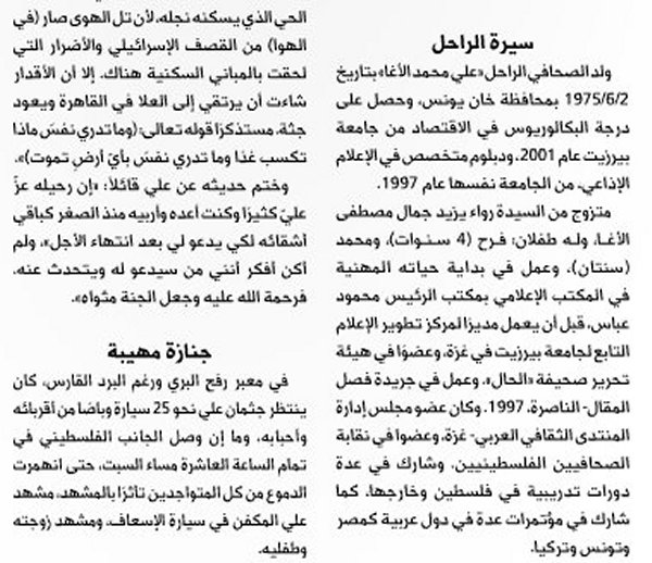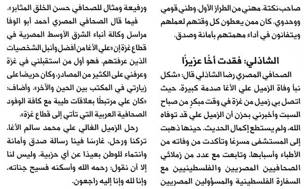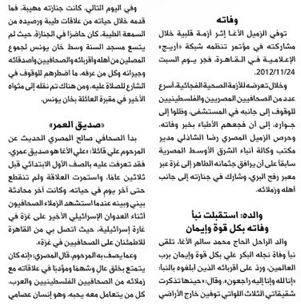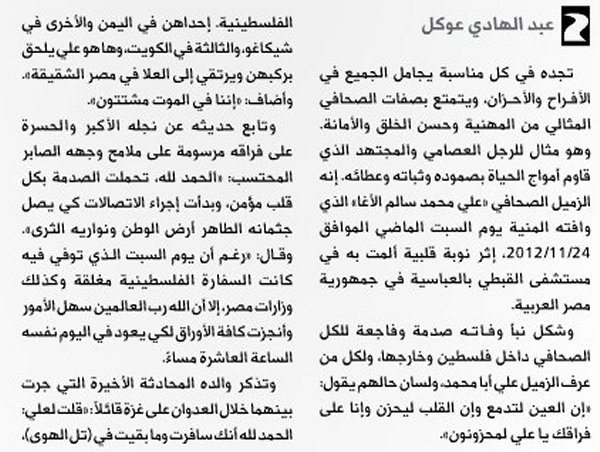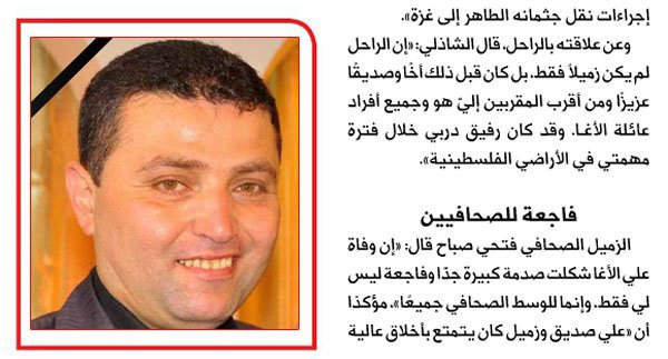 الرئيسة/متفرقات/الموت يغيب الزميل علي الأغا-عبدالهادي عوكل- جريدة الحال متفرقات الموت يغيب الزميل علي الأغا-عبدالهادي عوكل- جريدة الحال تاريخ النشر : الأربعاء | 05-12-2012 | 15:42 7832 بسم الله الرحمن الرحيم اضغط هنا للتعرف على المرحوم أ. علي محمد سالم علي حمدان الأغا يمكنك تلقي أحدث الأخبار أول بأول بانضمامك لإحدى مجموعات الواتساب الخاصة بالعائلة من خلال الضغط هنـا اظهر المزيد