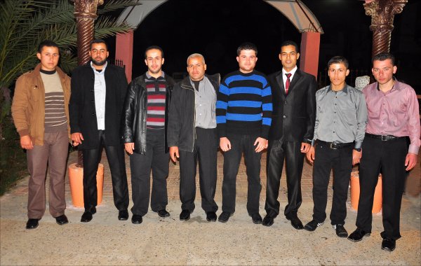 سعدي محمد الأغا(زوج عمة العروس)، العريس، والد العروس، أ. محمد(عم العروس)،