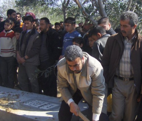 السيد ملاذ عبدالرحيم (حفيد الفقيدة)، الشاب عمر صدقي (حفيد الفقيدة) خلال دفن الجثمان