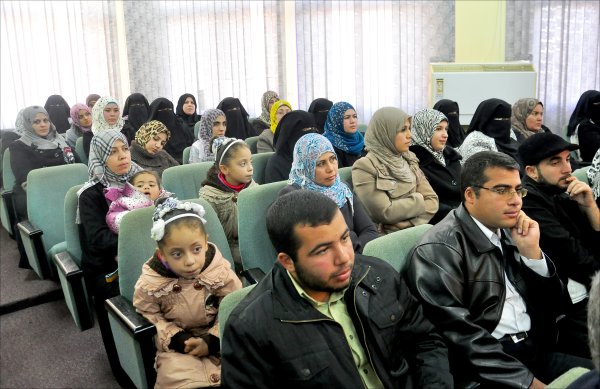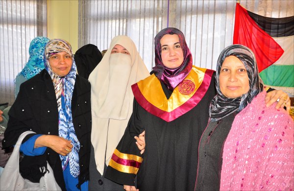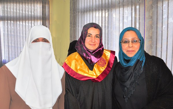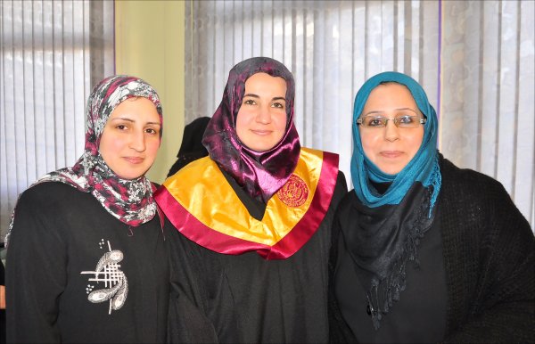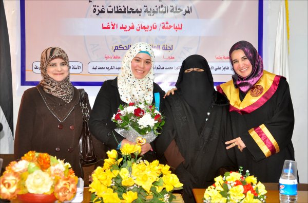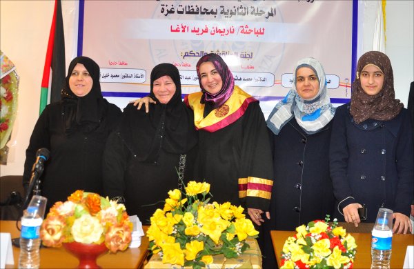 أ. هالة السقا، أ. تهاني الأغا، الباحثة، أ. رنا الأسطل، أ. رشا السقا، والدة الباحثة