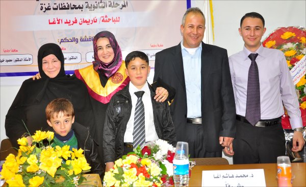 د. صلاح نعمات الأغا، أمين وليد الأغا، الباحثة، أم أحمد الاغا