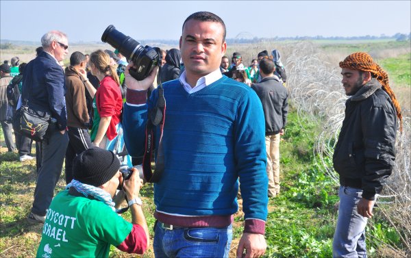 ضياء خالد خلال التصوير في منطقة الحدود الشرقية لغزة