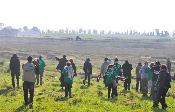 المتضامنون بمحاذاة السلك الحدودي الذي يبعد 100 م عن النقطة الإسرائيلية