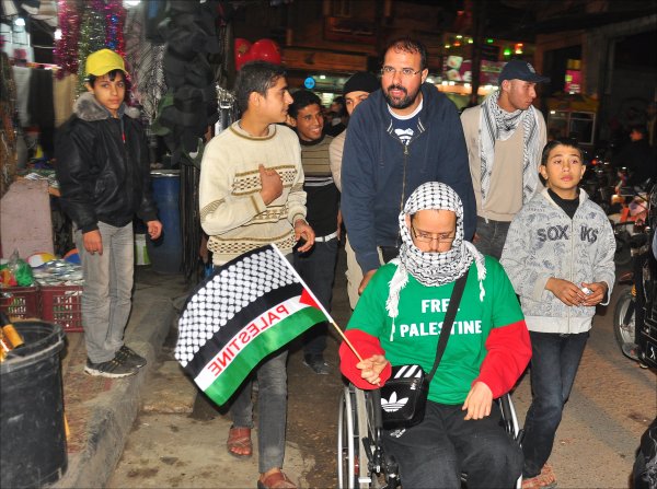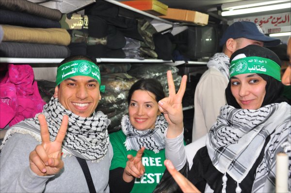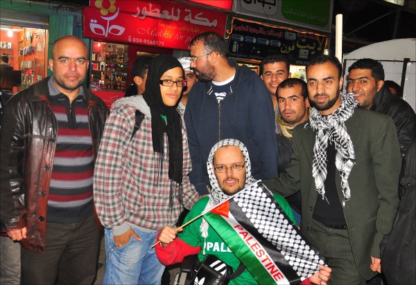 الناشطين خلال زيارة لشراء الكوفية الفلسطينية