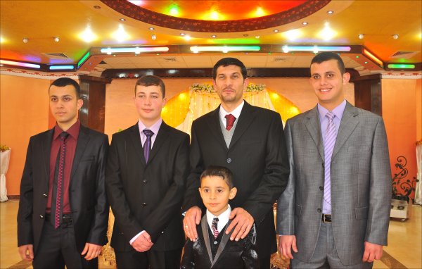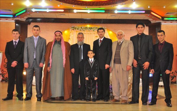 عبدالكريم(شقيق العروس)، والد العروس،الشيخ يوسف الأسطل، سليمان وعلي(شقيقا العروس)
