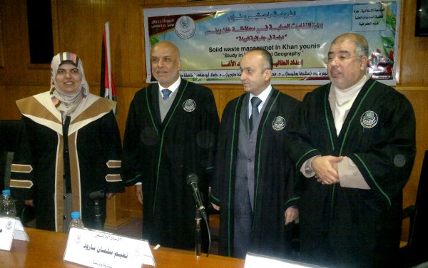 قاعة المؤتمرات- مبنى اللحيدان- الجامعة الإسلامية غزة- السبت الموافق19-01-2013 الباحثة ريم خالد حسني الأغا تنال درجة الماجستير في الجغرافيا بعنوان :