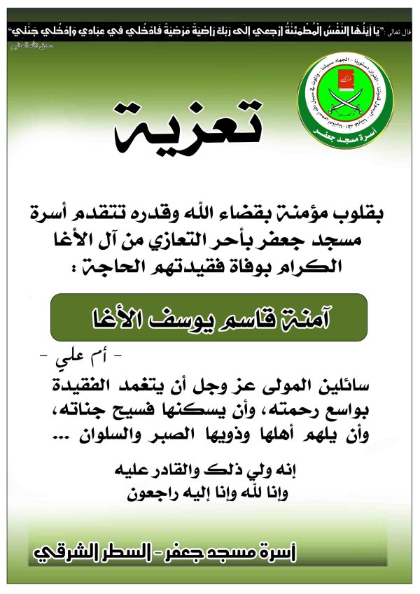 بقلوب مؤمنة بقضاء الله وقدره تنعى عائلة الأغا في الوطن والشتات