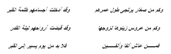 سنون تلو أخرى قلّت أو قاربت قليلاً سنين عمرها.. فكان ما كان، وابتلاها الله عز وجل أيضاً بفقدان الغالي البكر الحبيب.. وأي شاب إنه علي "أبو محمد" فعاشت وحشة فراقه.. فبموت علي اقترب الأجل المحتوم لأم علي رحمهما الله.. سلمت أمرها بالحمد والتهليل والحوقلة ولسان حالها يقول خذوني إلى علي اذهبوا بي إلى علي، عقود وهي ليست كما هي بل ازدادت ثقة وإيماناً بالله عاشت عمرها بغير نقصان.. فعن المصطفى صلوات الله وسلامه عليه قال: "أعمار أمتي بين الستين والسبعين وقلّهم مَن يتجوز ذلك.. أو كما قال عليه الصلاة والسلام"، رحمات ربي وبركاته تتزل عليكما.. فالمرض أبداً لا يعني بأن الموت قريب، ولا الصحة والعافية تعني تأخر الموت.. الإمام الشافعي لخص حياة أم علي وكأنه يحكي قصتها فقال:-