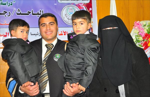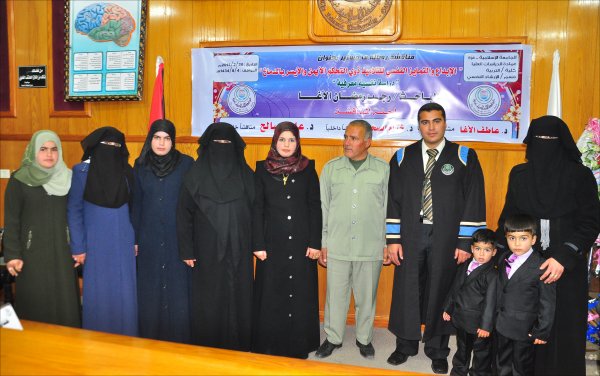 زوجة الباحث، أ. عطاف عثمان الأغا، الباحث ووالديه، أ. ناريمان فريد الأغا