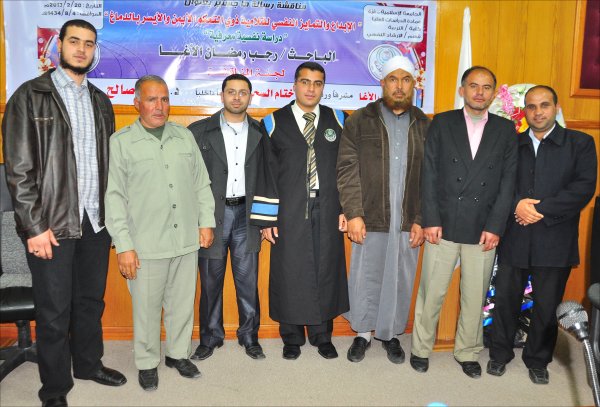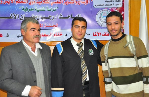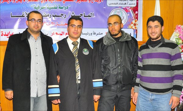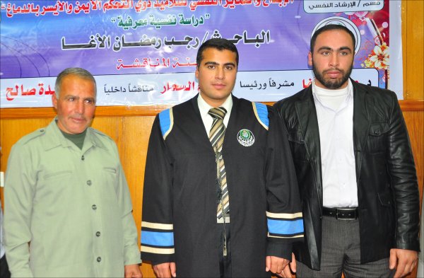 قاعة المؤتمرات- مبنى القدس - الجامعة الإسلامية بغزة- الأربعاء الموافق 20-02-2013 الباحث رجب رمضان رجب الأغا ينال درجة الماجستير في علم النفس بعنوان: