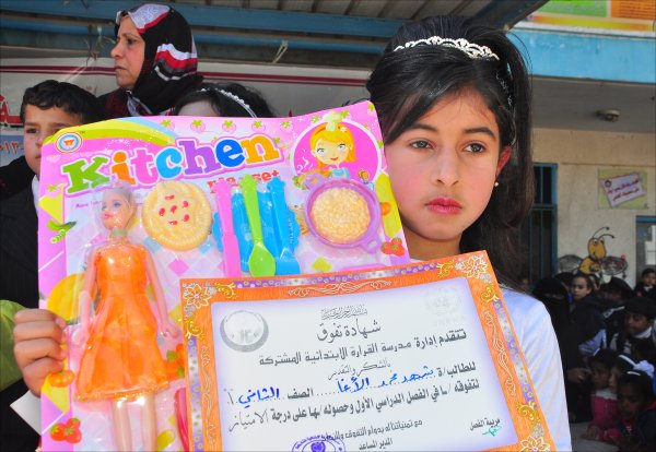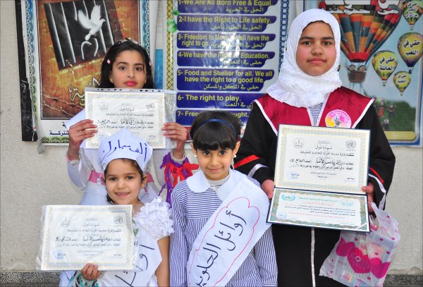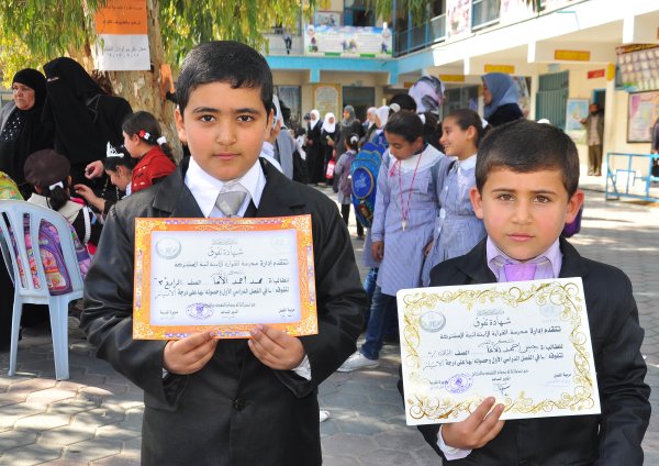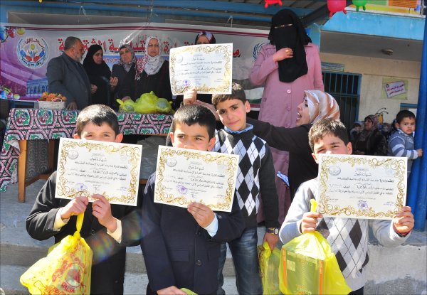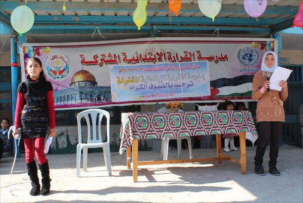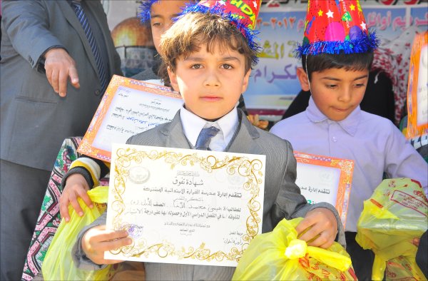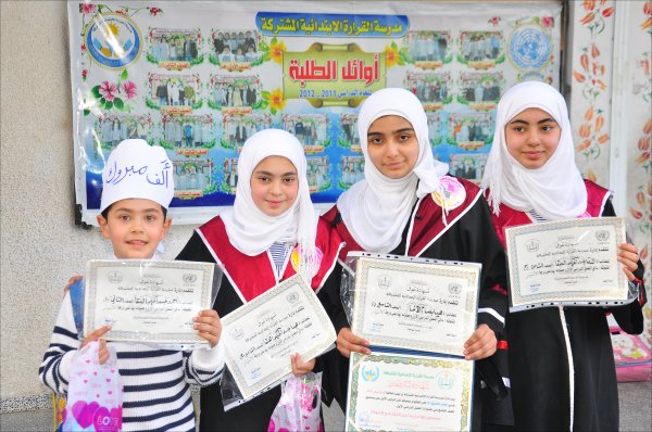 خان يونس- القرارة- الخميس الموافق 21-2-2013 ، نظمت مدرسة القرارة الابتدائية المشتركة للاجئين احتفالاً لتكريم الطلبة المميزين في جميع المراحل، وشارك في الإحتفال شخصيات المجتمع المحلي، وأولياء أمور الطلبة ولفيف من الطلبة، كما رحبت مديرة المدرسة فيفي البياري بالحضور وحثت الطلبة على بذل المزيد من الجد والاجتهاد للوصول إلى أعلى مستوى.
