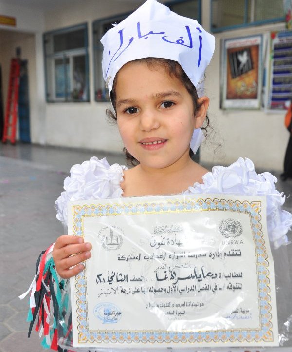 الطالبة رزان ياسر محمد الأغا الأولى على مستوى سابع تتسلم شهادتها