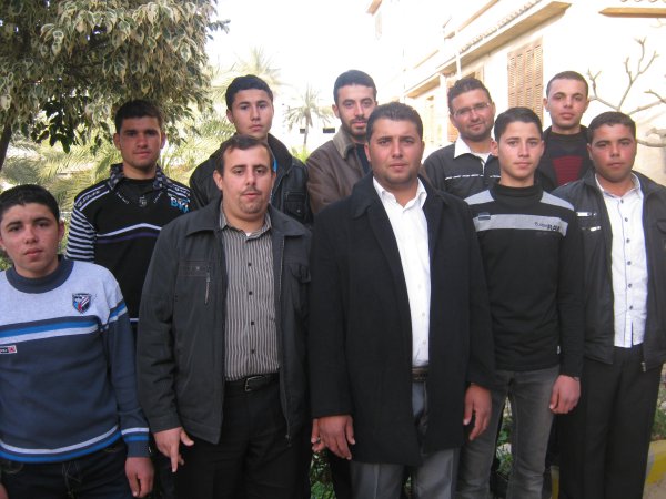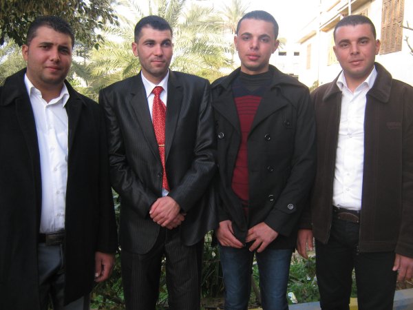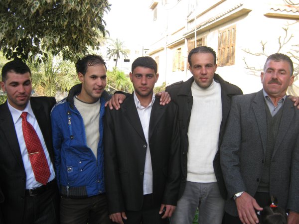 السطر الأمامي: وليد سفيان الأغا، محمد إحسان الأغا، كرم شقيق العروس، محمد هاشم، حسام الأغا
