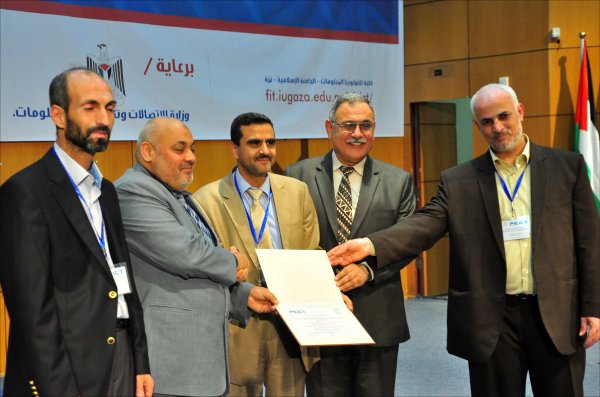 قاعة المؤتمرات الكبرى- الجامعة الإسلامية غزة- الثلاثاء الموافق 16-04--2013 أوصى المؤتمرون المشاركون في المؤتمر الفلسطيني الدولي لتكنولوجيا المعلومات والاتصالات 2013 الذي نظمته كلية تكنولوجيا المعلومات بالجامعة الإسلامية تحت رعاية وزارة الاتصالات وتكنولوجيا المعلومات، ووزارة التربية والتعليم العالي، واتحاد شركات أنظمة المعلومات الفلسطينية "بيتا"، وقناة "الكتاب" الفضائية، وقناة "القدس" الفضائية، وصحيفة فلسطين، بتبني مشروع لتدريب طلية كلية تكنولوجيا المعلومات على منهجيات معالجة القضايا الحياتية العملية، وطالبوا بتفعيل التعاون بين الشركات المبتدئة (start-ups ) و المستثمرين المحليين والخارجيين بما يسهم في التعرف على فرص دعم الأفكار الواعدة، وشجعوا إنشاء إدارة أو شركة منفصلة عن الجامعة تختص بإنتاج برمجيات لزبائن محليين وخارجيين، ولفتوا إلى أهمية متابعة الأبحاث المقدمة بأعمال تطبيقية من خلال تفعيل دور الفرق الطلابية البحثية، ونصحوا الباحثين بالاهتمام في مجال التعليم الإلكتروني والذي يتيح فرصة في الوصول إلى قاعدة أوسع من المستفيدين، ودعوا إلى الاهتمام بموضوع التشفير (cryphgraphy ) والتعمية (steganography )، تشجيع الطلبة والباحثين على إنتاج سوفت وير يستخدم داخل الجامعة ويخدم مجال التكنولوجيا، وتفعيل مجالات الحوسبة النقالة.