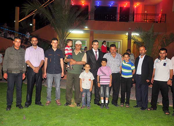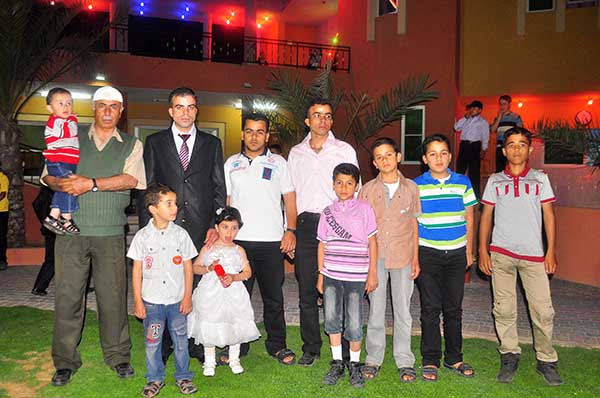 نضال جودة الأغا، احمد(عم العروس)، ونجله عبدالرحمن، والد العروس