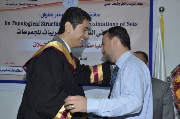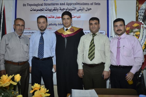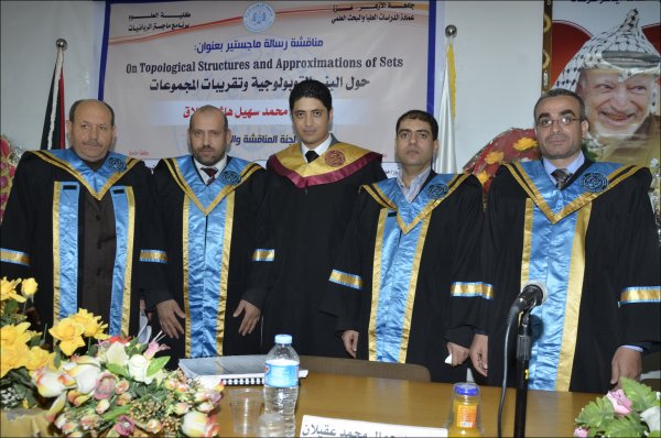 قاعة المؤتمرات- جامعة الأزهر غزة - الأربعاء الموافق01 -05-2013 ، الباحث محمد سهيل هاشم شبلاق ينال درجة الماجستير من كلية العلوم- قسم الرياضيات بعنوان :