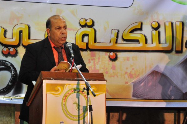مدرسة حيفا الأساسية الدنيا- الأحد الموافق 19-05-2013 قال رئيس التجمع الوطني للفكر والثقافة د.صلاح الناقة "إن النكبة اصطلاح فلسطيني يبحث في مأساة التشرد والمعاناة الفلسطينية، وسياسة العدو في التهجير القسري من المدن والقرى التي احتلت عام48".