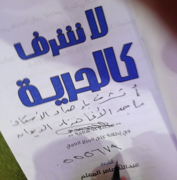 إهداء ديوان " لا شرف كالحرية" أشعار الصديق الإعلامي السعودي أ. عبدالله عامر المعلم