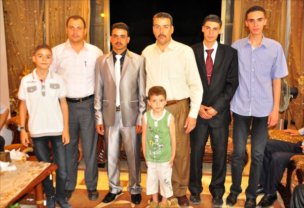 ربيع(شقيق العريس)، أ. عاشور وافي(زوج عمة العروسين)، نضال(شقيق العروس)، العريس،