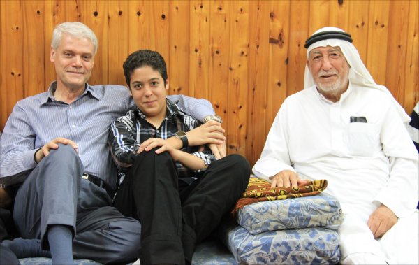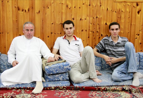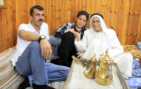 صبحي إيهاب صبحي الأغا يتوسط جده الحاج محمد طاهر الأغا و أ. مأمون أحمد