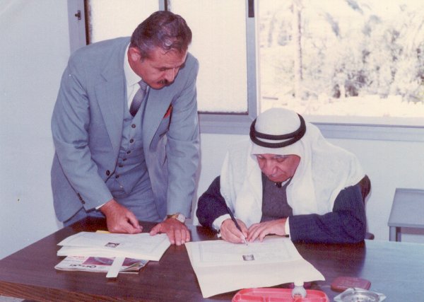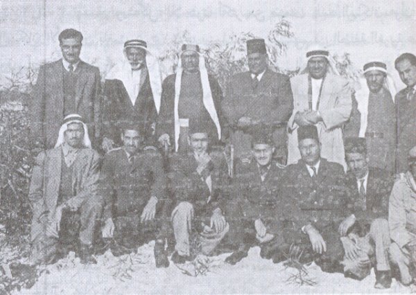 ويبدو في الصورة رئيس البلدية المرحوم عبدالرحمن الفرا، وامينها العام المرحوم قاسم الفرا،